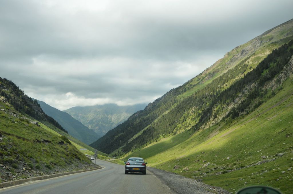 As we left the Spanish side behind, the landscape slowly began to change. The dry, flat plains gave way to rolling hills, then rising mountains, and eventually, we found ourselves driving through the Pyrenees. The scenery was breathtaking. The road twisted and turned, climbed and dropped, revealing new views around every bend—lush valleys, jagged cliffs, distant peaks dusted with snow even in summer. It was the kind of drive that made you fall in love with the road all over again.