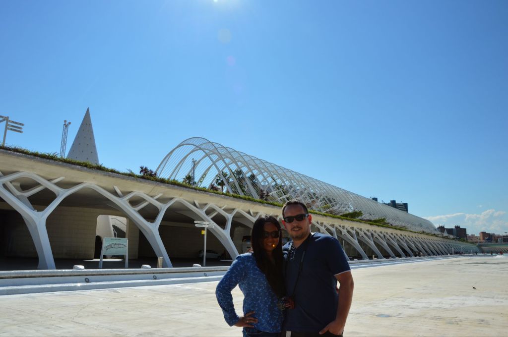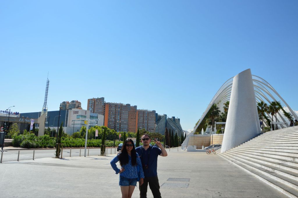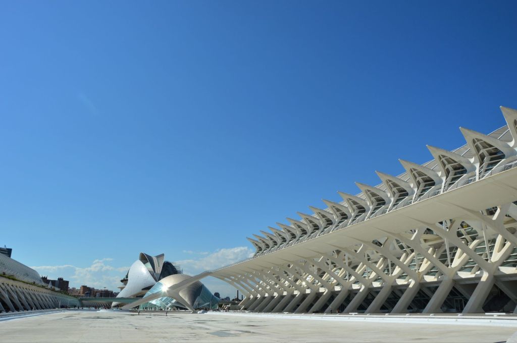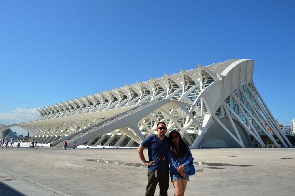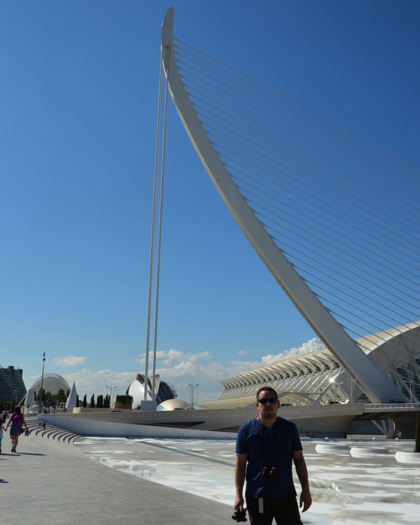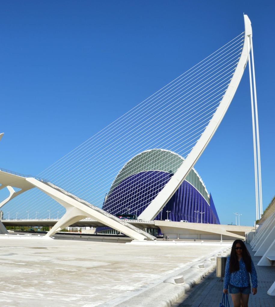 Our first big outing was to the City of Arts and Sciences, one of the most iconic sights in Valencia. Even before we got close, we could tell we were in for something special. The architecture looked like something from the future—curves, glass, and reflections dancing in pools of water. We didn’t go inside each building, but honestly, we didn’t need to. Just walking around the complex was an experience. Each structure had its own character—the Hemisfèric, shaped like a giant eye; the Museu de les Ciències Príncipe Felipe, with its rib-like supports; the Palau de les Arts Reina Sofía, standing tall like a white blooming flower. The surrounding landscape, with its peaceful water features and well-kept gardens, gave the whole place a quiet, dreamlike feel. We spent hours there, just walking, admiring, and taking photos that never quite did the place justice.