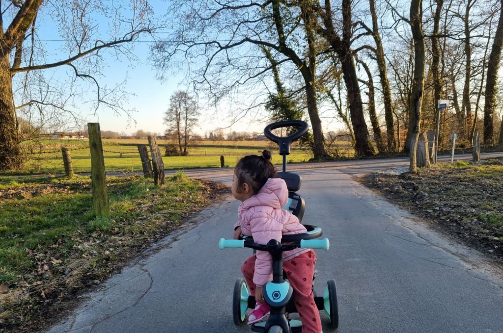 As always, my daughter was excited for our walk. She loves being outdoors, feeling the breeze on her face, and discovering the little wonders around us. She sat comfortably on her tricycle while I pushed her along the quiet paths, surrounded by towering trees and the gentle rustling of leaves. We had a mission—finding horses. My daughter adores them, and we were hopeful that we might spot one in a nearby farm.
