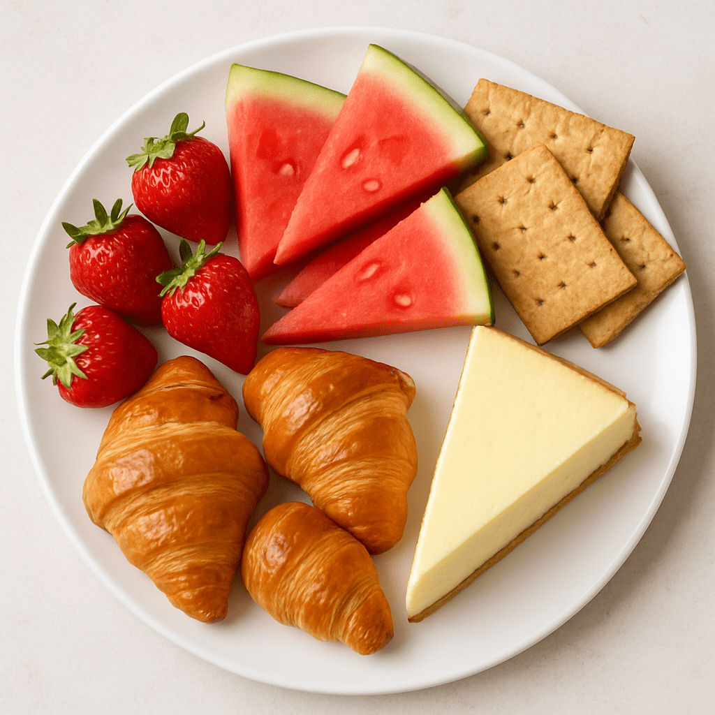 Since then, it’s become a beautiful part of who she is. Grapes, croissants, strawberries, watermelon, carrots, cucumber, crackers—anything she’s happily munching on becomes a little offering. She’ll pause mid-bite to hand one over, not saying much, just looking up with eyes that ask, “You want to be happy too?”